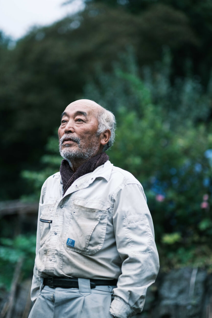 棟梁さんに教えてもらったわさび田は、国道を外れて山道に入った先にある。シーズンがちょうど終わったばかりということで、畑の手入れをしていた男性に話を聞くことができた。