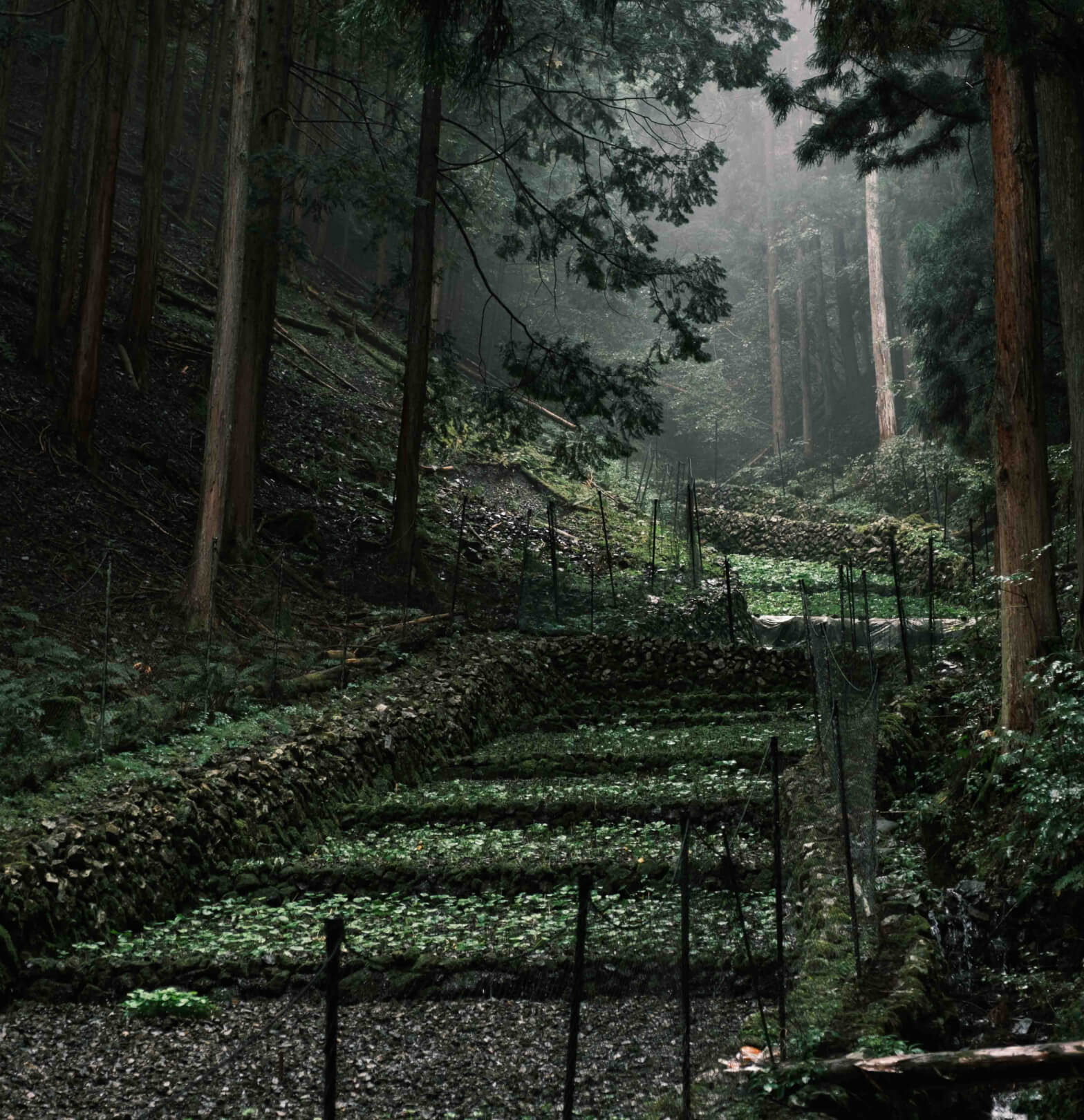 そう言われ斜面の上へと目線を向けると、霧深い幽玄な森の中にはっきりと鮮やかな緑を見ることができた。